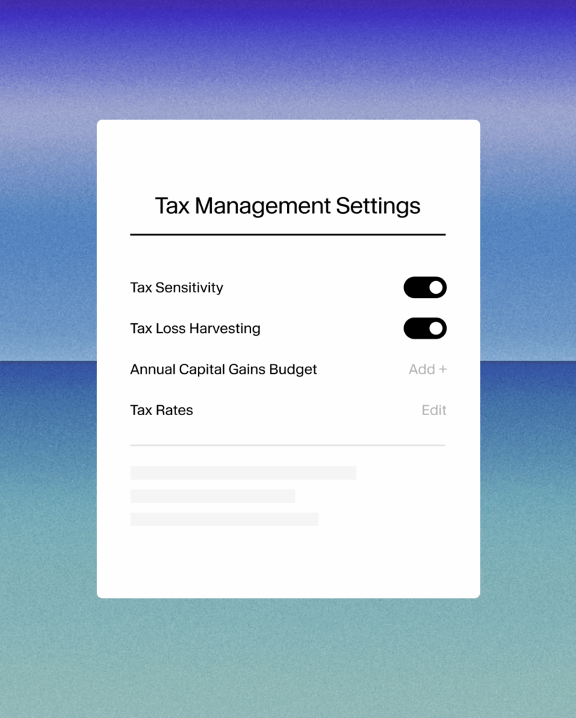 - Maximize tax impact with tools that automatically run in the background—drift monitoring, tax loss harvesting, capital gains budgeting, rebalancing, and more.