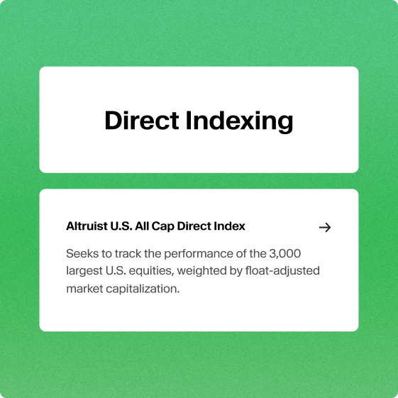 Direct Indexing is a smart fit for clients in taxable accounts who are sensitive to taxes, want values-based investing, or simply want more transparency and control. And, with Altruist’s low $2,000 minimum, we’ve made direct indexing broadly accessible. It may also be great for HNW or emerging affluent clients looking to differentiate from cookie-cutter portfolios.