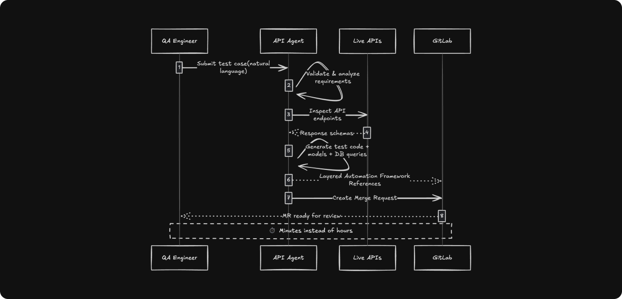 We recognized that AI represents a fundamental shift in how we approach quality engineering, enabling us to scale our testing efforts exponentially while maintaining cost efficiency. The API Automation Agent (api-agent) emerged from this initiative.