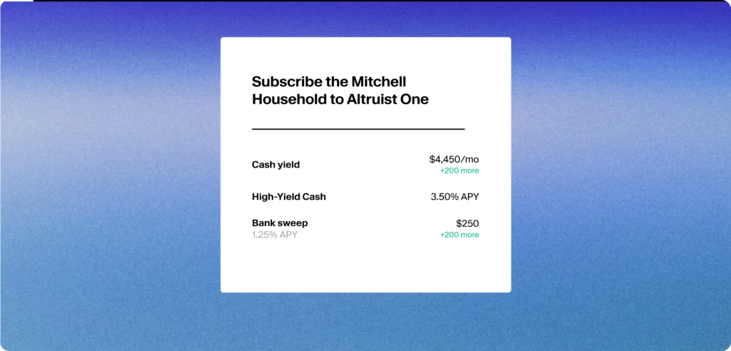 Choose serious savings, higher yields, and more peace of mind with Altruist One.